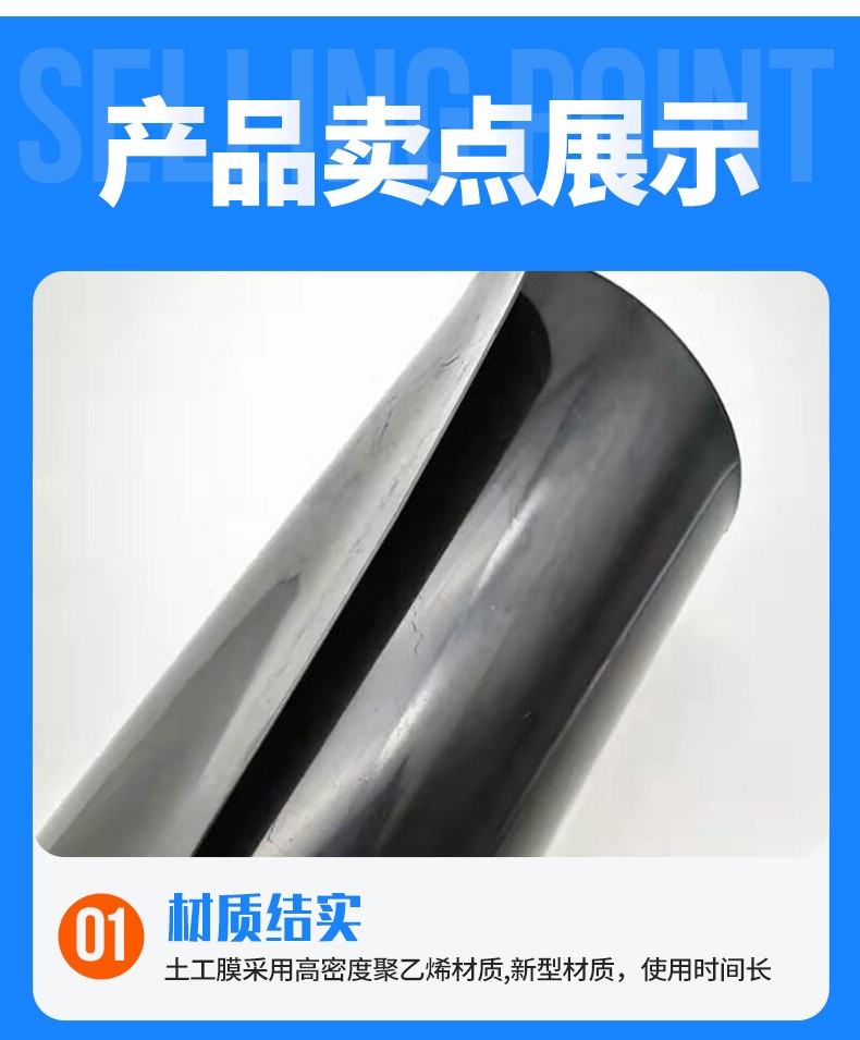 4. HDPE geomembrane has very high tensile strength, allowing it to meet the requirements of high-standard engineering projects;