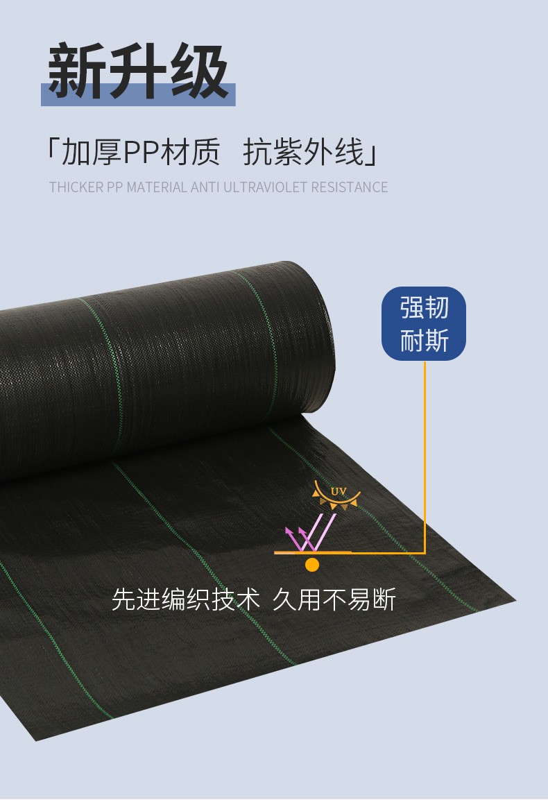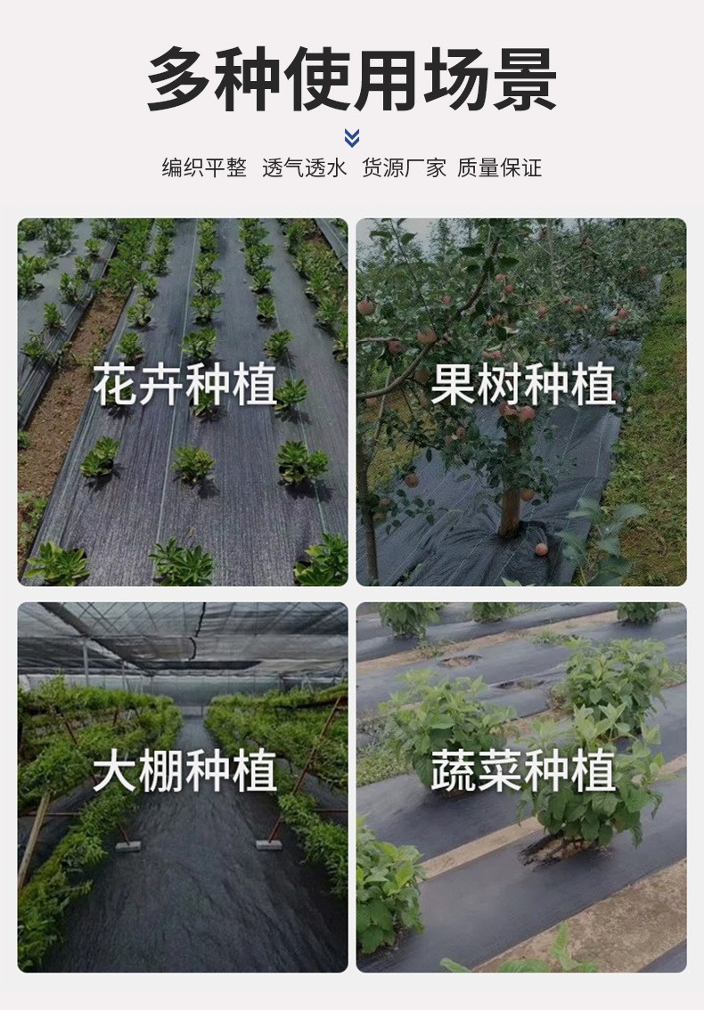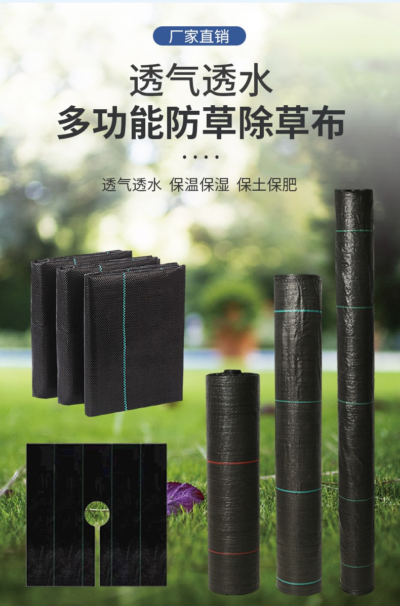 Horticultural ground cloth, also known as polyethylene weed control fabric, promotes root growth and prevents root rot. This effect also comes from the woven structure of the ground cloth, which ensures that water does not accumulate around the crop roots and allows for some air flow around the roots, thereby preventing root rot. The drainage performance of PE weed control fabric ensures rapid removal of surface water, and the layer of gravel and medium sand beneath the cloth effectively prevents soil particles from seeping back up, keeping the surface of the cloth clean.