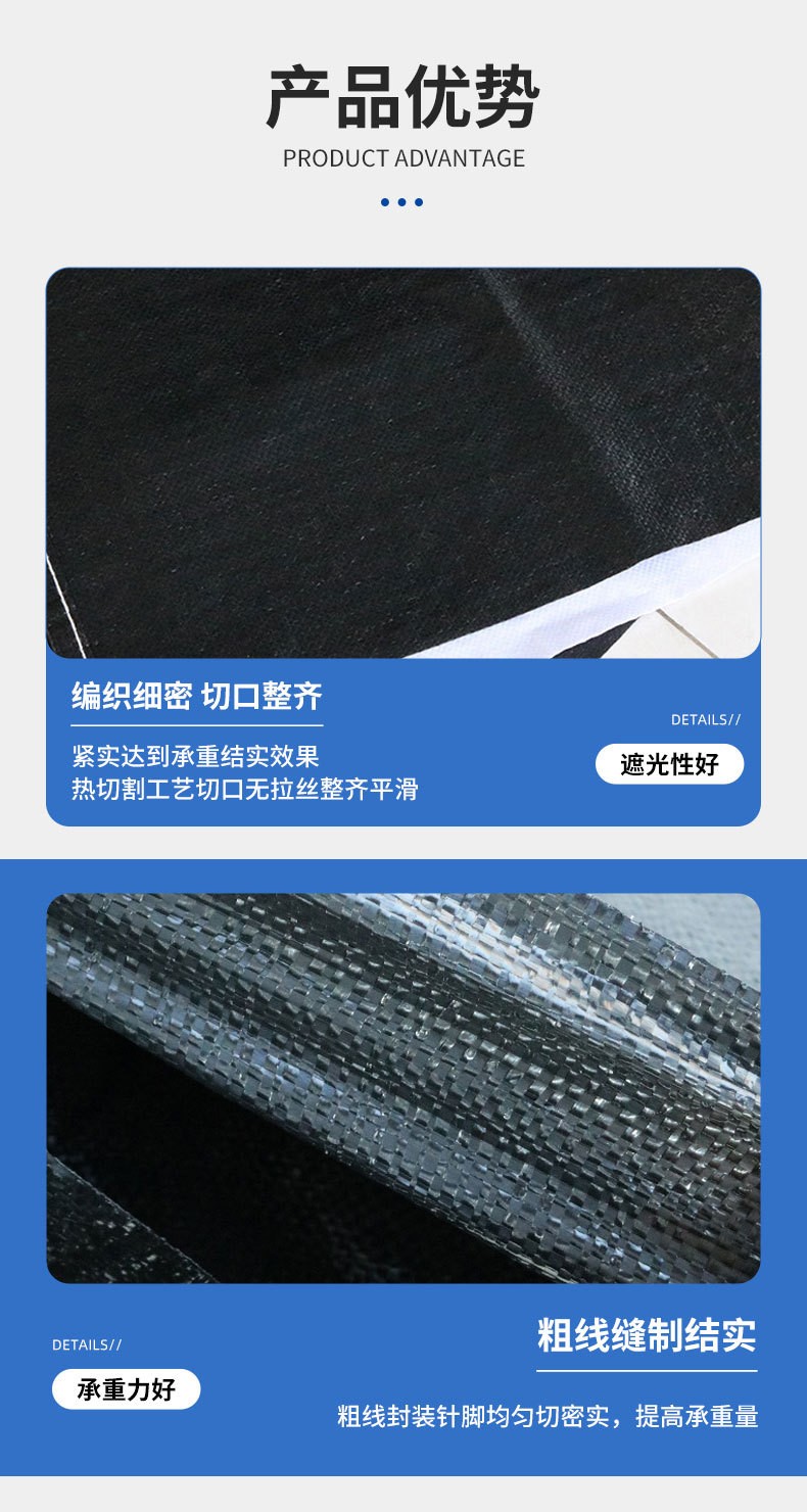 1. Prevents weed growth on the ground. The fabric blocks direct sunlight from reaching the soil (especially with black fabric) and, with its sturdy structure, prevents weeds from growing through it, thus effectively inhibiting weed growth.